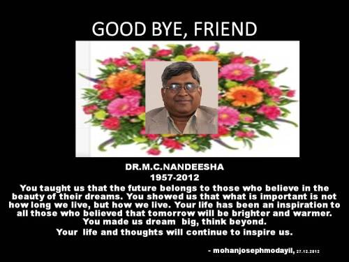 Category:UpdatesIt is with a heavy heart that we announce the passing of our dear friend and colleague, Dr. Mudnakudu Nandeesha, who succumbed on Dec 27th to complications resulting from a severe heart attack he suffered on November 23rd.