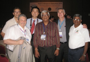 Since the opening keynote speaker at GCA 2010 was our Patron, Professor M.S. Swaminathan, FRS, this gave AwF Directors from Australia, Belgium, India, the UK and the USA an excellent opportunity to discuss our activities and future plans with him. Board members also had a similar opportunity to meet with the Co-Chairs of GCA2010, Jiansan Jia (Chief, Aquaculture Service, Fisheries & Aquaculture Department, FAO, Rome) and Sena de Silva (Director General of NACA).