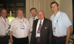 Left to right: David Little (UK; AwF Director), Roy Palmer (Australia; AwF Director), Jiansan Jia (Italy; FAO Aquaculture Chief), Sena de Silva (Thailand; NACA Director General), Geoff Allan (Australia; AwF Director) and M.C. Nandeesha (India; AwF Co-Chair)